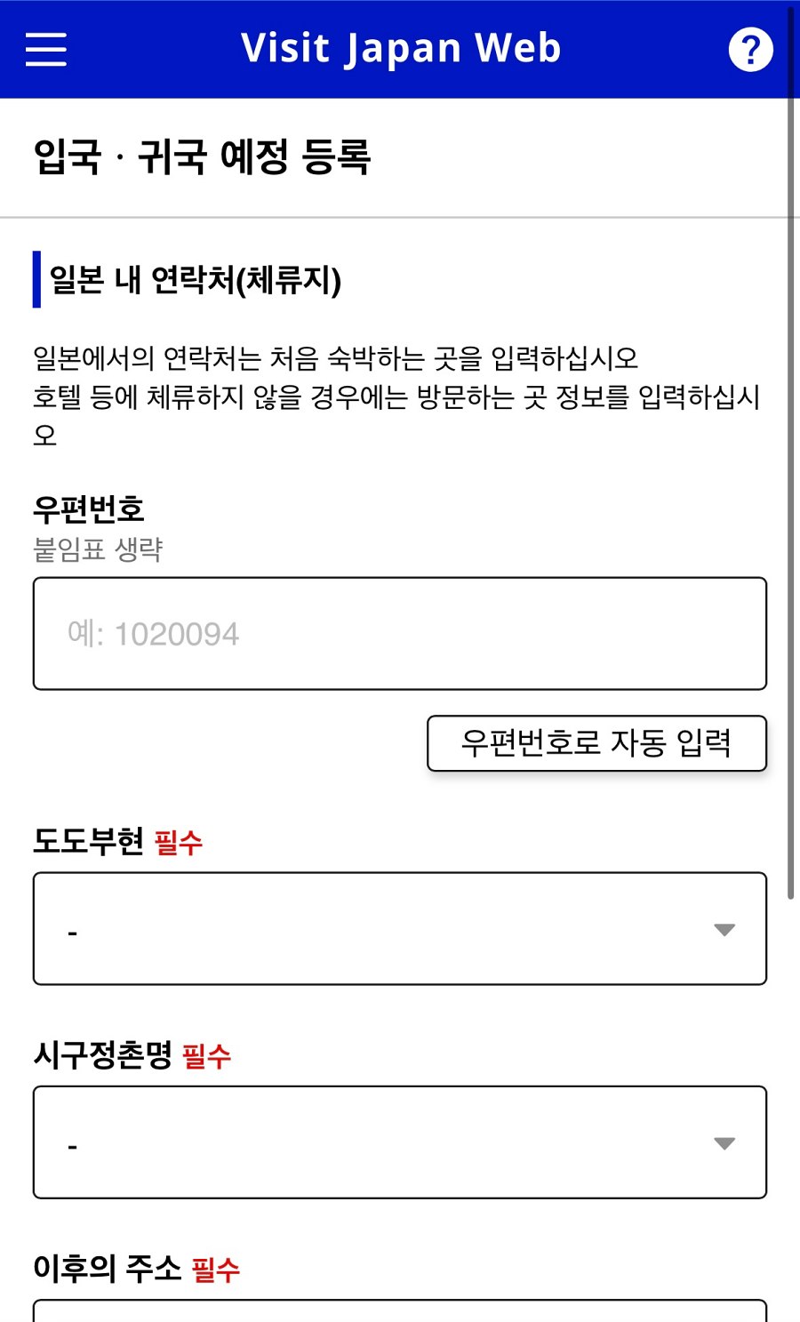 - 일본 내 체류지 (첫날 숙소 주소)