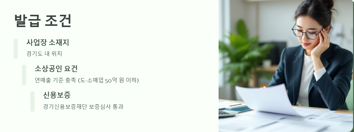 - 신용보증재단 이용 가능 여부 : 경기신용보증재단의 보증심사를 통과해야 하며, 신용 상태가 너무 낮거나 보증 한도를 초과한 경우 발급이 제한될 수 있습니다.