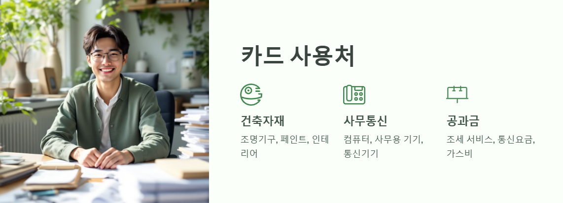 힘내고 카드는 소상공인의 필수 운영비 결제를 위해 다양한 분야에서 사용할 수 있습니다.