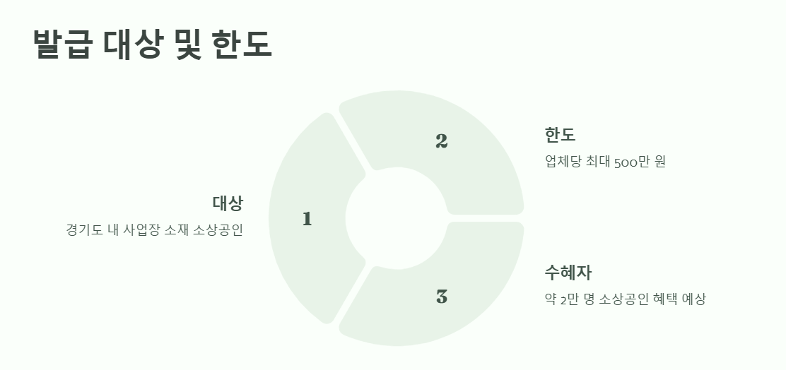 - 소상공인 요건 : 「소상공인 보호 및 지원에 관한 법률」에 따른 소상공인이어야 하며, 연매출 규모와 상시근로자 수 등이 소상공인 기준에 부합해야 합니다. 예를 들어, 도·소매업의 경우 연매출 50억 원 이하 사업자가 해당됩니다.