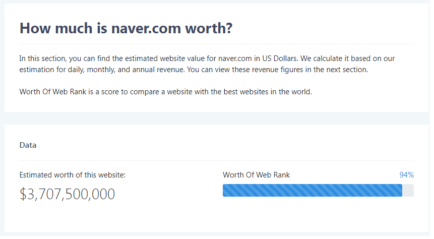 궁금증이 생겨서 알아봤다. 대한민국 대표 사이트 네이버의 가격은 얼마인가?