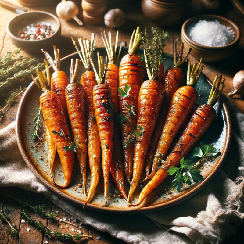 - 올리브 오일, 소금, 후추로 양념한 당근을 오븐에 구워 간식이나 반찬으로 제공합니다.