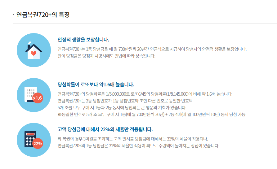 연금복권은 2020년 4월 30일에 처음 출시되었으며, 매주 목요일에 추첨이 이루어집니다. 이 복권의 가장 큰 특징은 당첨금을 일시불로 지급하는 것이 아니라, 매달 일정 금액을 지급받는다는 점입니다. 그러니 일단 당첨이 되면 장기간 동안 안정적인 수익을 기대할 수 있죠.
