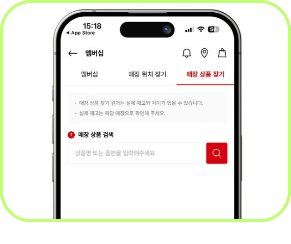 검색한 상품의 재고를 확인할 매장을 선택합니다.